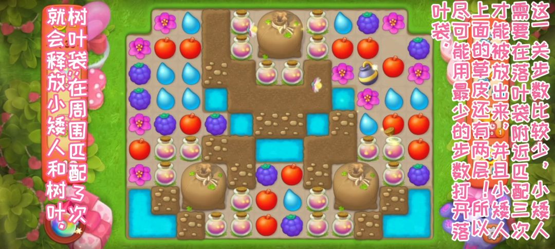 关卡介绍 关卡目标:萤火虫、小矮人 关卡步数:19 关卡特殊元素:树叶袋、土块、萤火虫罐 关卡难度:困难