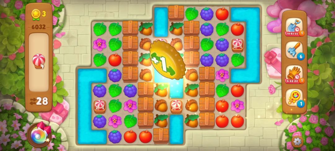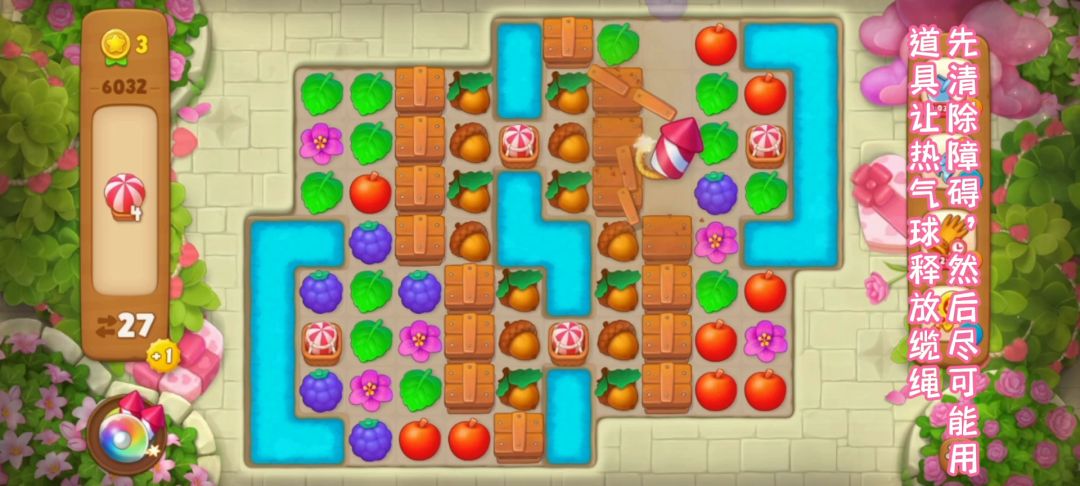 关卡介绍 关卡目标:热气球 关卡步数:28 关卡特殊元素:热气球、箱子、橡实 关卡难度:普通