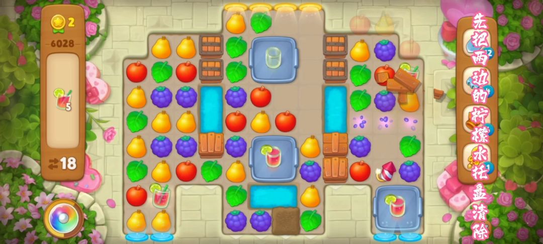关卡介绍 关卡目标:柠檬水 关卡步数:25 关卡特殊元素:柠檬水托盘、箱子、土块 关卡难度:普通