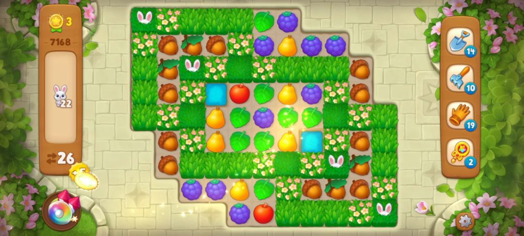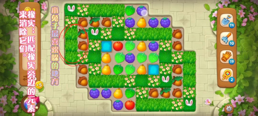 关卡介绍 关卡目标:小兔子 关卡步数:26 关卡特殊元素:橡实、小兔子、草地 关卡难度:普通