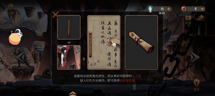 屈死鬼的签给了它(应该是昨晚给的)今天上线发现它没给答案,陷入僵局了这是……花铜钱给的提示就是要屈死鬼的答案卷轴……怎么办啊卡住……