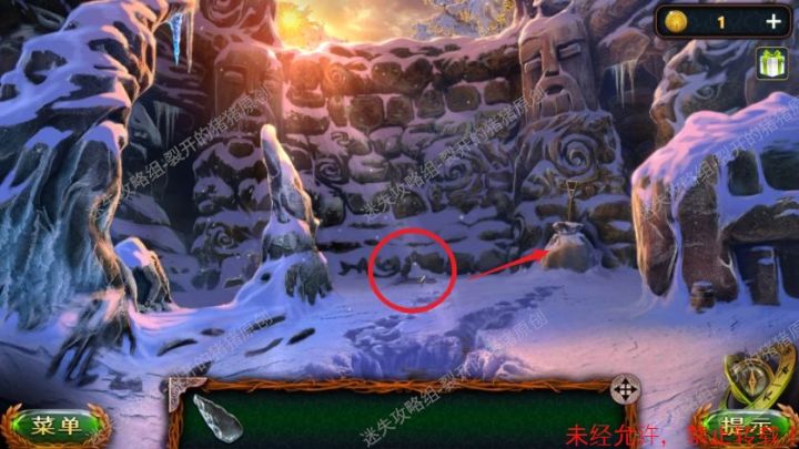 🍀第一部分🍀1.这部作品上来就搞得很玄幻,我们将扮演一个考古学家并莫名奇妙传送到了冰天雪地中,先从地上拿到在梯子旁的锋利的石头,然后用石头割开右边挂在墙上的布袋子,拿到马龙小屋的钥匙以及一把铲子。1.12.我们用铲子点击雪地开始一个铲雪的小游戏,完成后我们的梯子就会架好我们就能去上面了(小游戏并不困难,如图所示,先把下方的雪丢入坑内,在把右上方的雪先处理)2.1 2.23.来到上面之后,我们