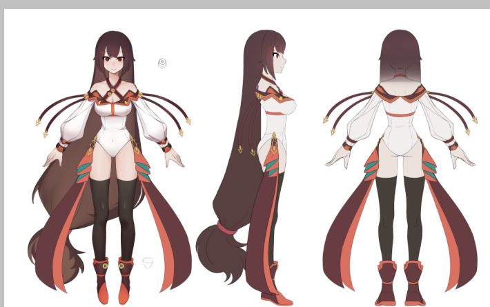 想给芙蕾建个模,于是特地找朋友画了个三视图。属于是给自己开一个大坑了。😅