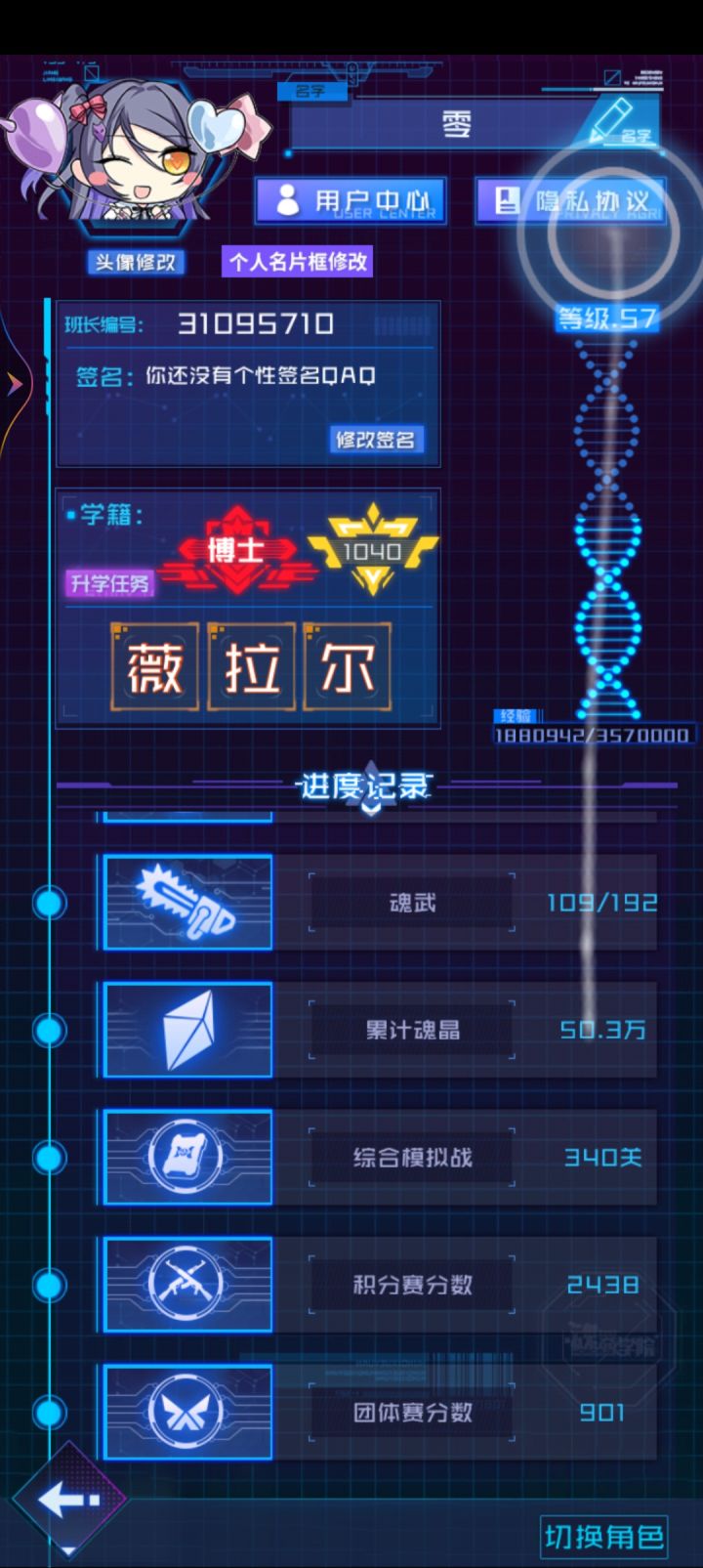 第一先允许我道歉,呀虽然我曾经说过我不会退坑但是呢,抱歉我用食言了,对不起魂器学院。呀,回顾以前,什么时候呢,第一次接触魂器,可以说是一见钟情,也可以说是缘分,第一次玩就入迷了,玩呀玩,不知不觉也陪伴魂器一年多了,我是蛟和啸实装时候入的。这一年多陪着魂器经历了很多,同时再我最无助的时候,再我生病的时候,都有着魂器的陪伴,可以说虽然只有短短一些时候,但魂器对我来说绝对意义非凡