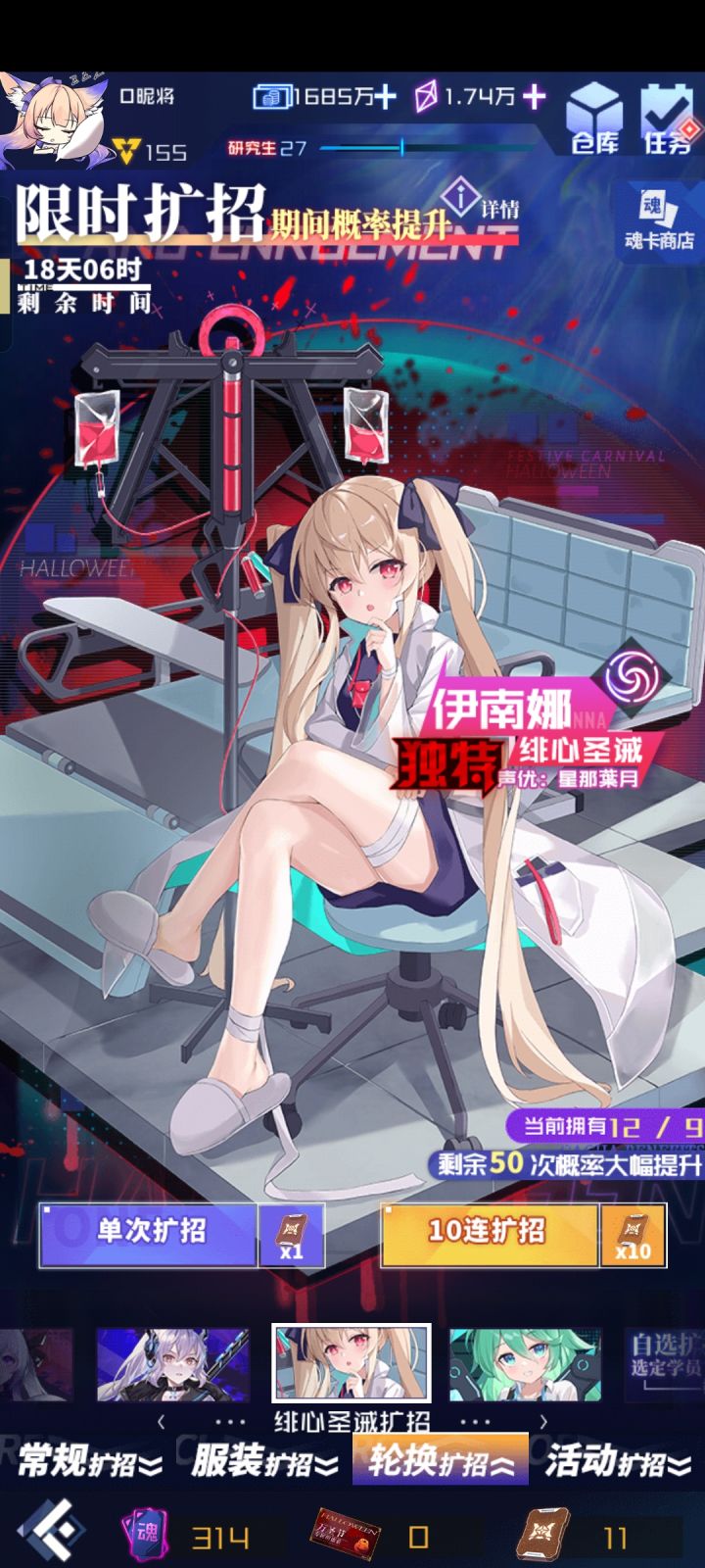 伊南娜的池子抽了接近差不多五百抽,除了第一个五十抽出了两个,后面全部保底,其中有三四次五十抽都不出一只,把主线间章都肝爆了才出完,这都什么魔鬼概率啊,五百抽一次双红都没见过,严重怀疑官方恶搞出货率!