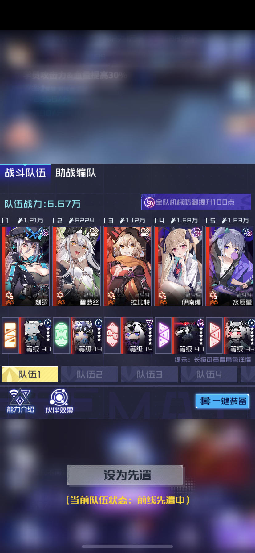 目前队伍差不多氪还能一个满震.刻罗错过活动了.现在是氪天启振五嘛主线打不过了.还是给碧落丝换成泉满震.
