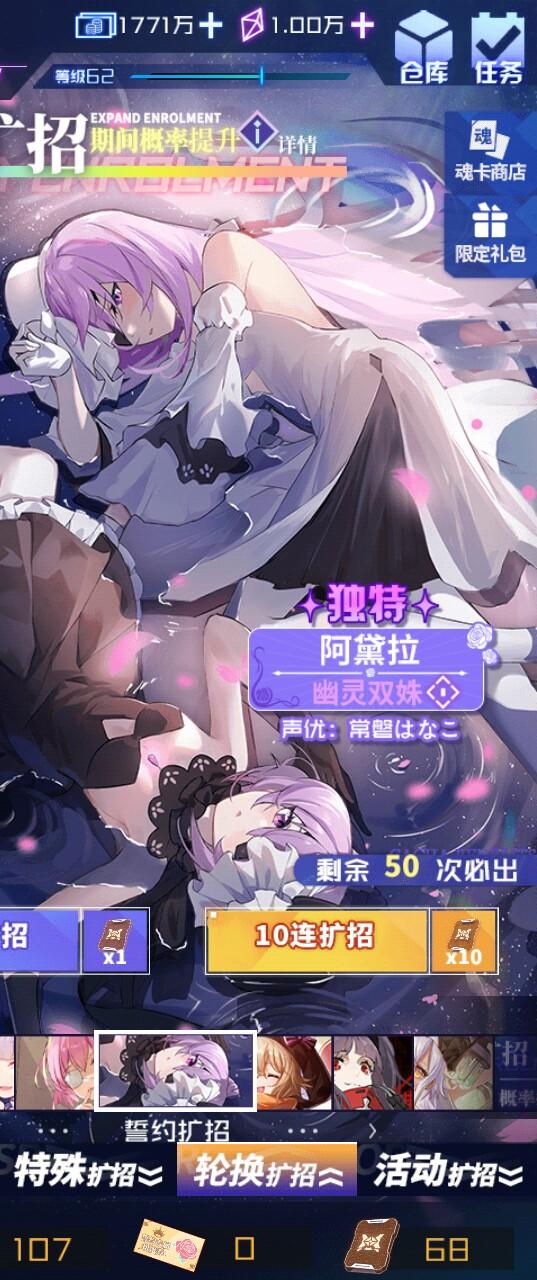如图,回归两天,运气比较好靠送的差不多400抽,抽满了sp索菲亚和织夜,现在还有一些抽,我是抽游枭还是碧萝丝比较好呢,回归自选扩招我选的刻罗