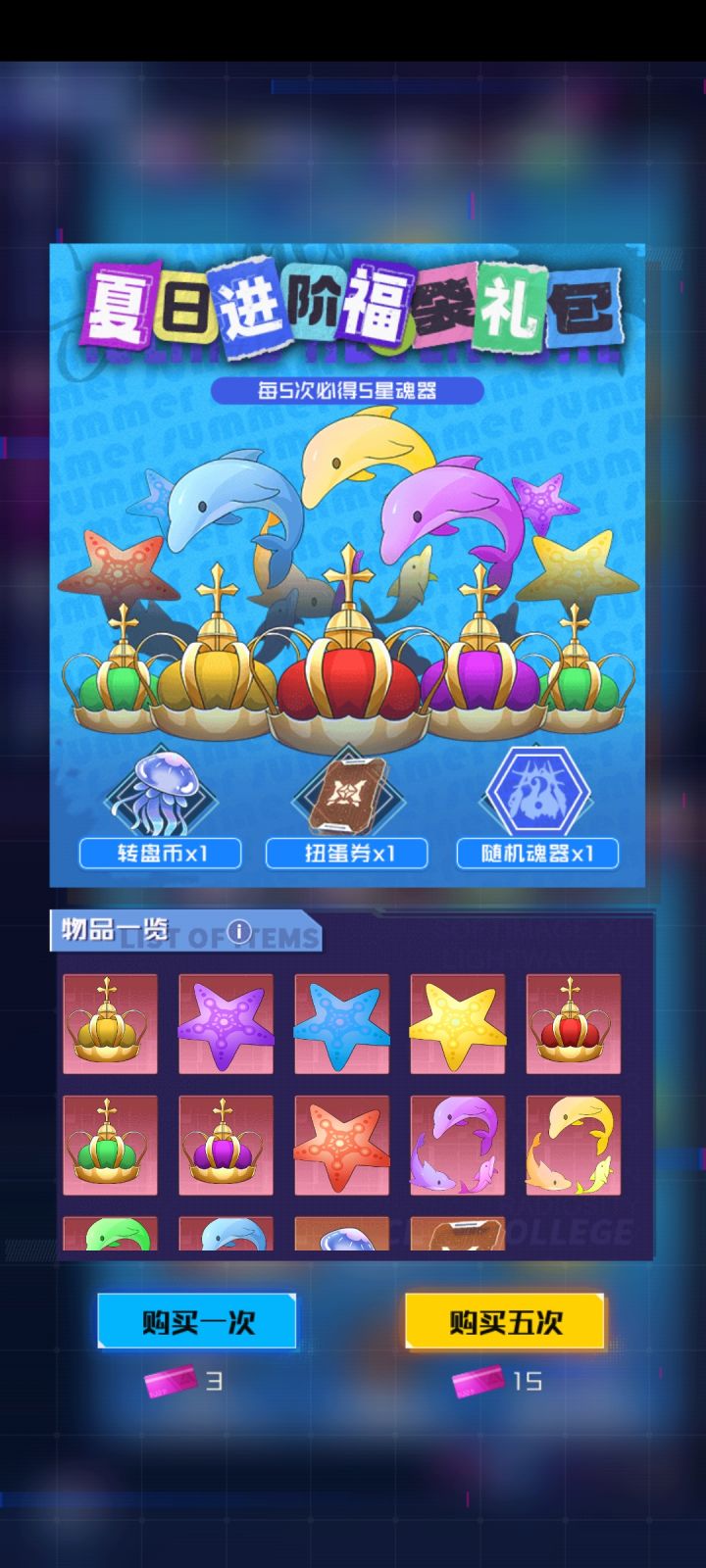 回坑看强度榜抽了阿卡丽和莱拉,啥必大混池捞爱瑠出了三只尤利娅(去年就抽满了),其他的以后出卡池就抽,缺的挺多的。魂器方面不太懂,看攻略里边区分了氪金,平民和白嫖,氪金魂器是这种福袋里的吗为什么还有魂器还有换色啊