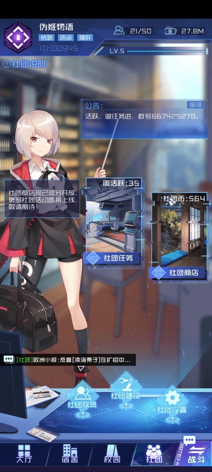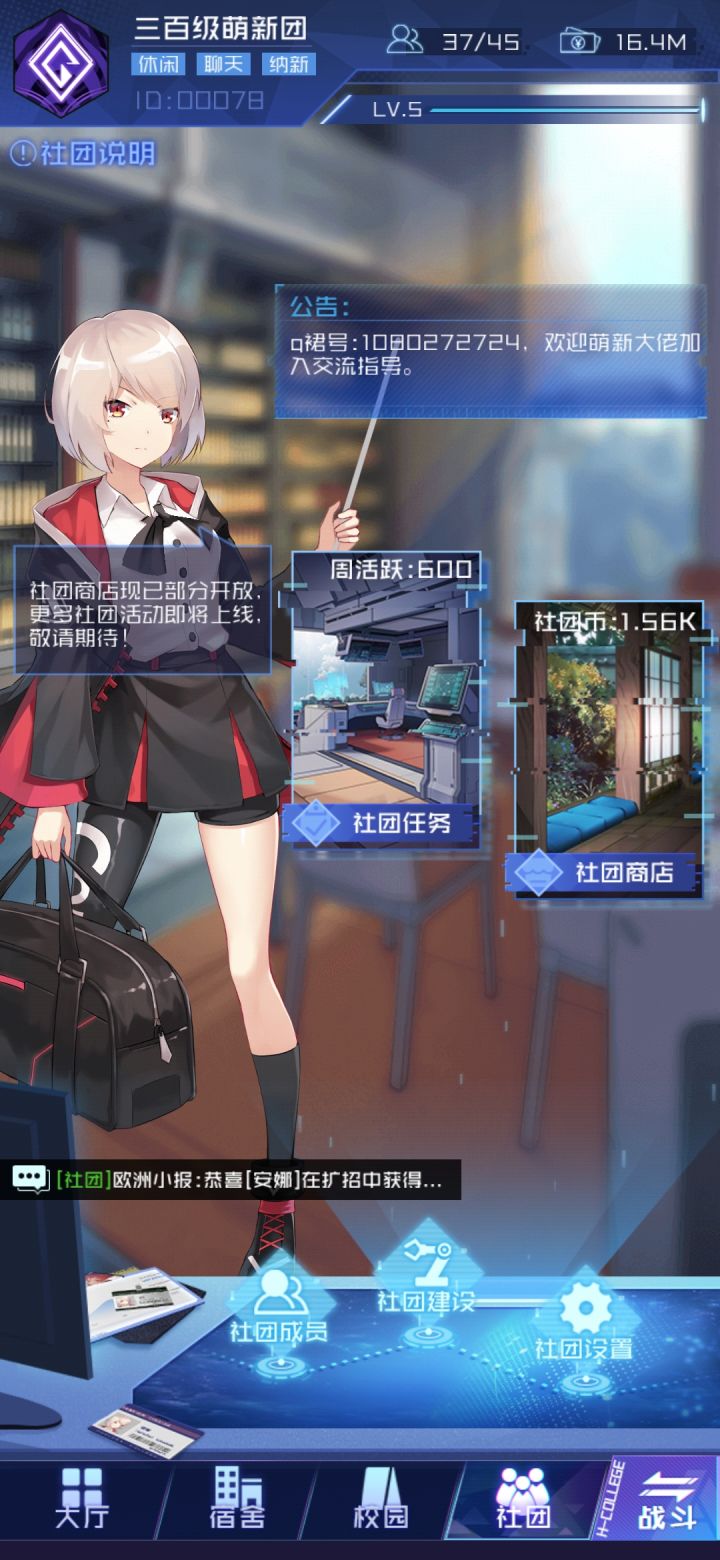 5级社团,人比较少,找点人,没要求,快乐至上,QQ群号1143201554。社团ID00264