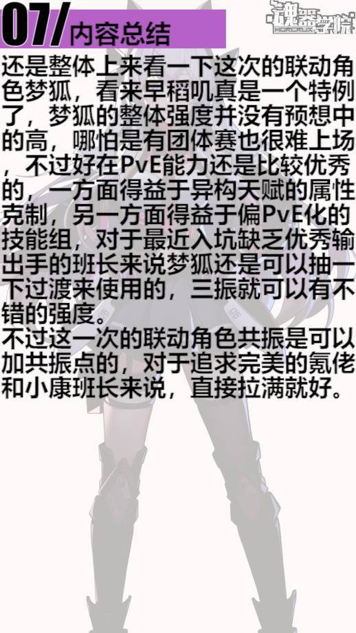 前言:宝宝来啦~~8月份加入了一位新学员—萨姬塔,虽然是副姐姐脸的样子,但是意外的特立独行呢(✪ω✪),而且战斗中陪伴的居然有一只机器狗。这期给班长们详细介绍下新学员的战斗表现吧:PVE推荐指数★★★★☆,PVP推荐指数★★★★。 “我不会,输给那个,橘发的酒罐子 ” 目录索引:1、学员介绍2 、技能分析3 、队伍搭配4 、魂器&芯片5 、测评总结【学员介绍】学籍: 游走于人