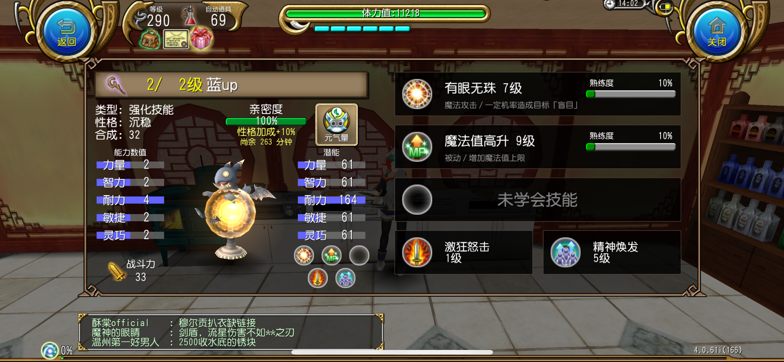 2级赌快速技能 至少合4次…2+190-9696+190—143143+190-167167+190—178但是!个人觉得!宠物技能比拉等级更折磨😭(看看多久能赌出来一只至少4级初始的土豆雷子)