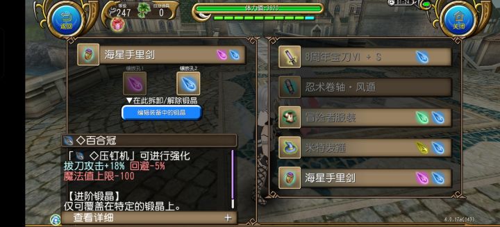 PS:自用配置,并非最佳。(仅供参考) |总共使用了360技能点数。 |星石总共提供了31技能点数。 星石清单 |威力攻击 Lv.10 |剑术要领 Lv.10 |魔力充填 Lv.10 |步步为营 Lv.1 |破风之势 Lv.10 |提升攻击力 Lv.10 |强打 Lv.10 剑术技能 |威力攻击 Lv.5 |迅捷攻击 Lv.6 |横扫千军 Lv.5 |爆气斩 Lv.10 |音速斩切 Lv.5 |真