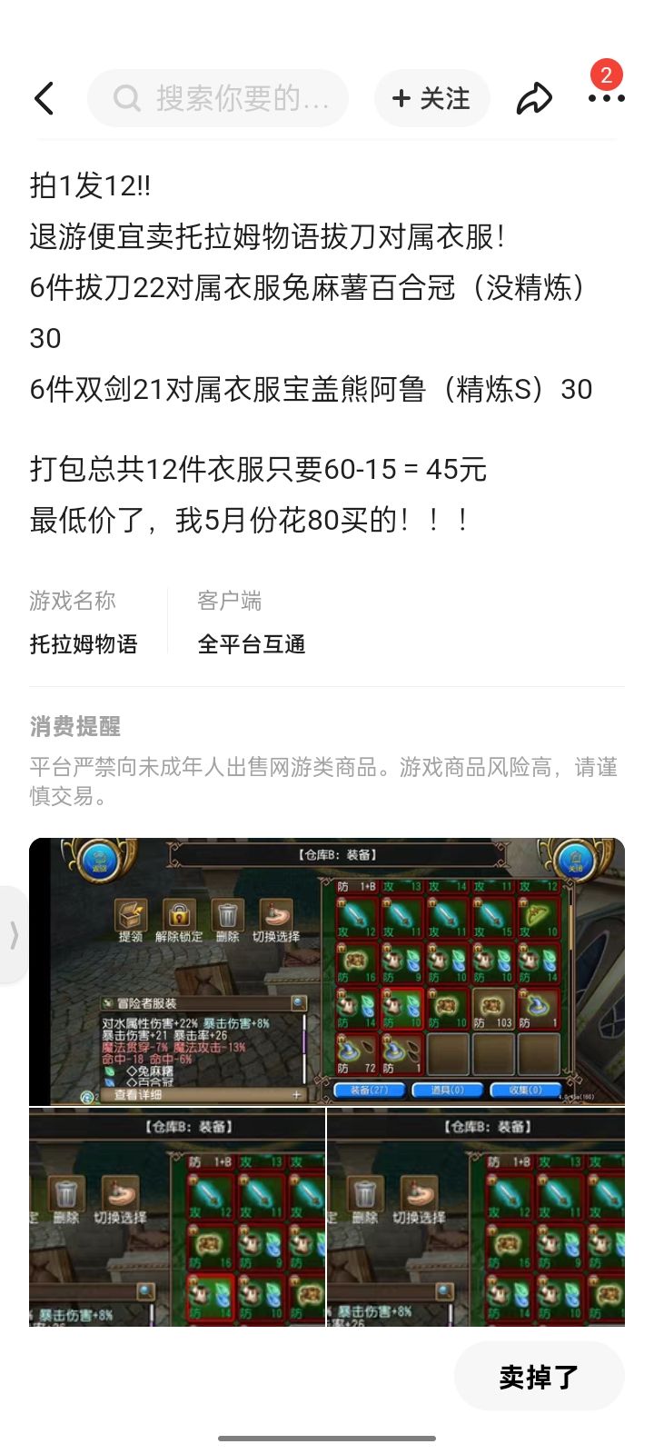 #托拉姆物语 家人们这么抽象吗,不就前版本挂了几十块钱的东西赚个18块钱还要交平台税,这也有人倒卖,玩托的都这么穷吗,生活不能自理只能玩虚拟游戏赚钱了吗,平常我还以为大街乞讨都是玩玩而已,明明刚从我这入手的当天就开始挂,变脸都不扣豆的,还五月份笑到了