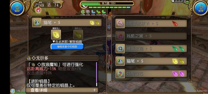 先后经历了没设置连击,副手魔导带错属性,帽子带成猫尾了,而且猫尾的石头还有神秘-15%远