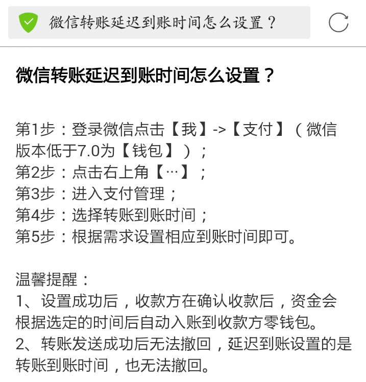 线下交易什么的,经常有骗子骗钱,还挺多,我觉得吧,骗子挂呀挂的,却挂一个来一个,总是有人被骗,这样下去也不行,于是就给各位找来了这个微信的延迟到账的方法。设定到账时间,对方会直接显示资金已到账,但是呢,钱却不会直接到对方的微信里,直到你设定的时间结束才会转账成功,如果对方是骗子,你就可以在转账成功之前报警退钱啦~,具体操作看图,如果看不懂,你就让一个身边的人和你自己尝试操作一下,直到成功为止。最后