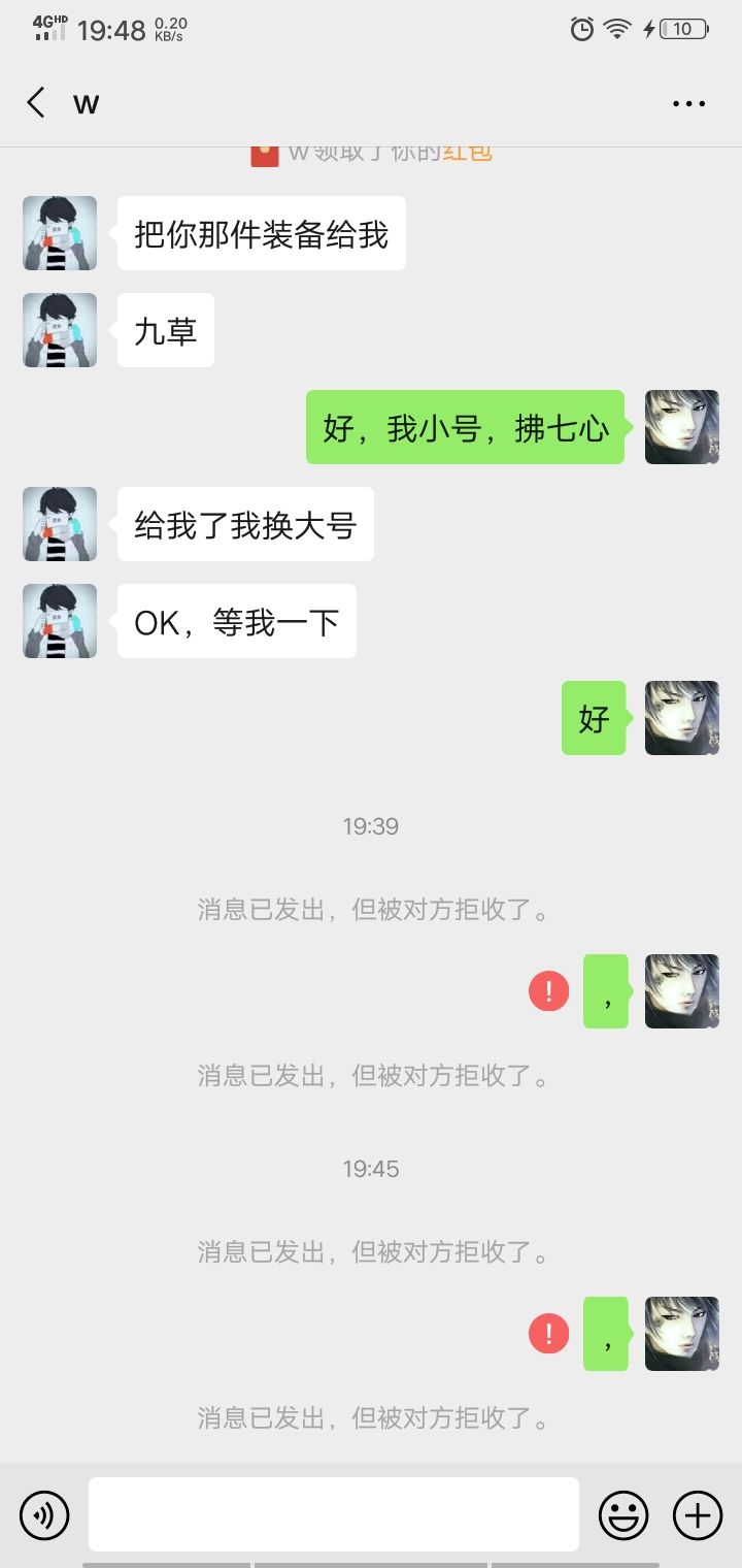 新骗子,大家注意一下!游戏名:大爱狗子买装备,不给装备,微信拉黑人!吸取教训了,远其他玩家别上当,,见到帮忙点举报,谢谢!