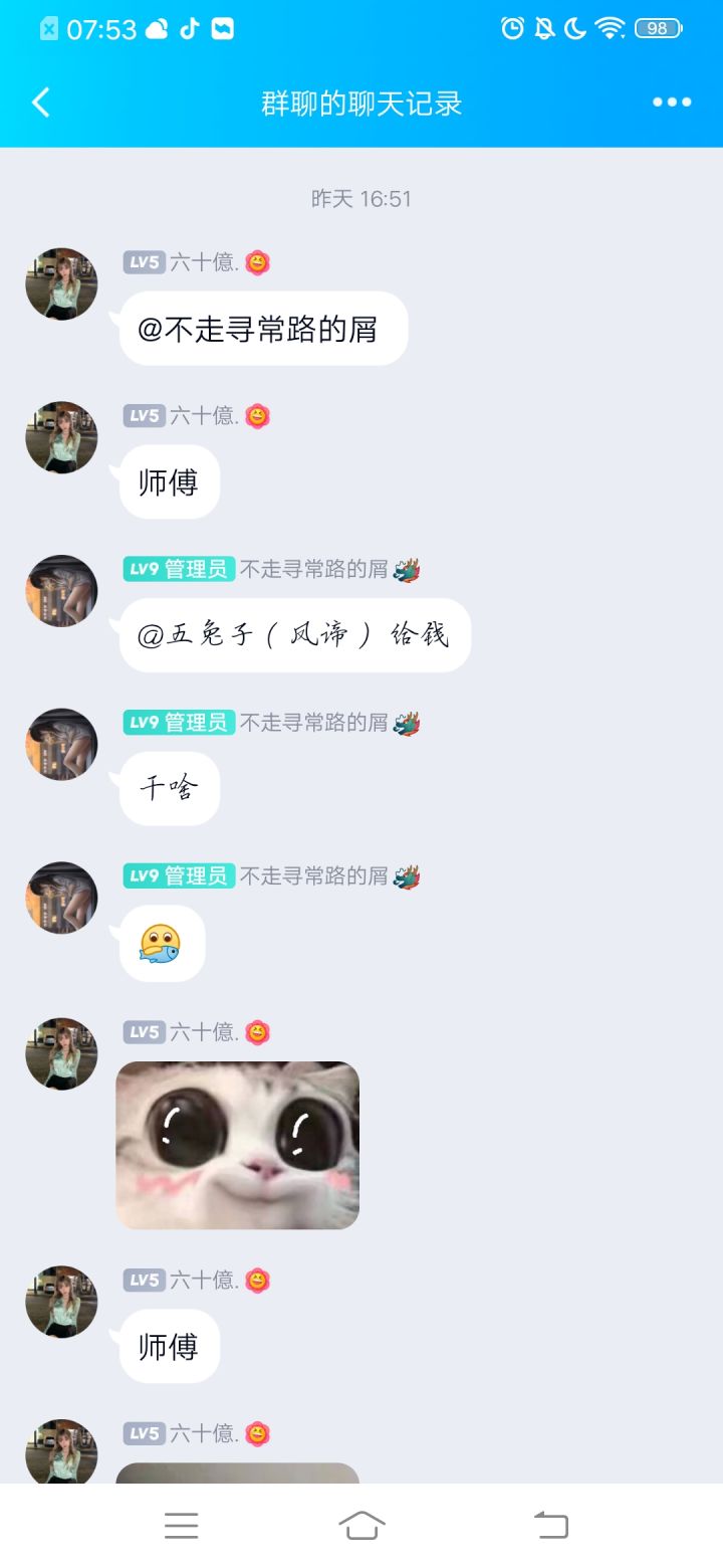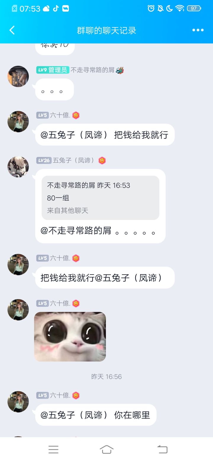 兄弟们,最近有个小可爱(**)广撒网,认了好多师傅坑东西,大家注意一下游戏id:萌兔帕喵斯QQ:六十億.tap名:派大星认了我便宜师叔做师傅,然后发现又认我们一个公会大佬,进来就是要东西,就当我们欠她的一样