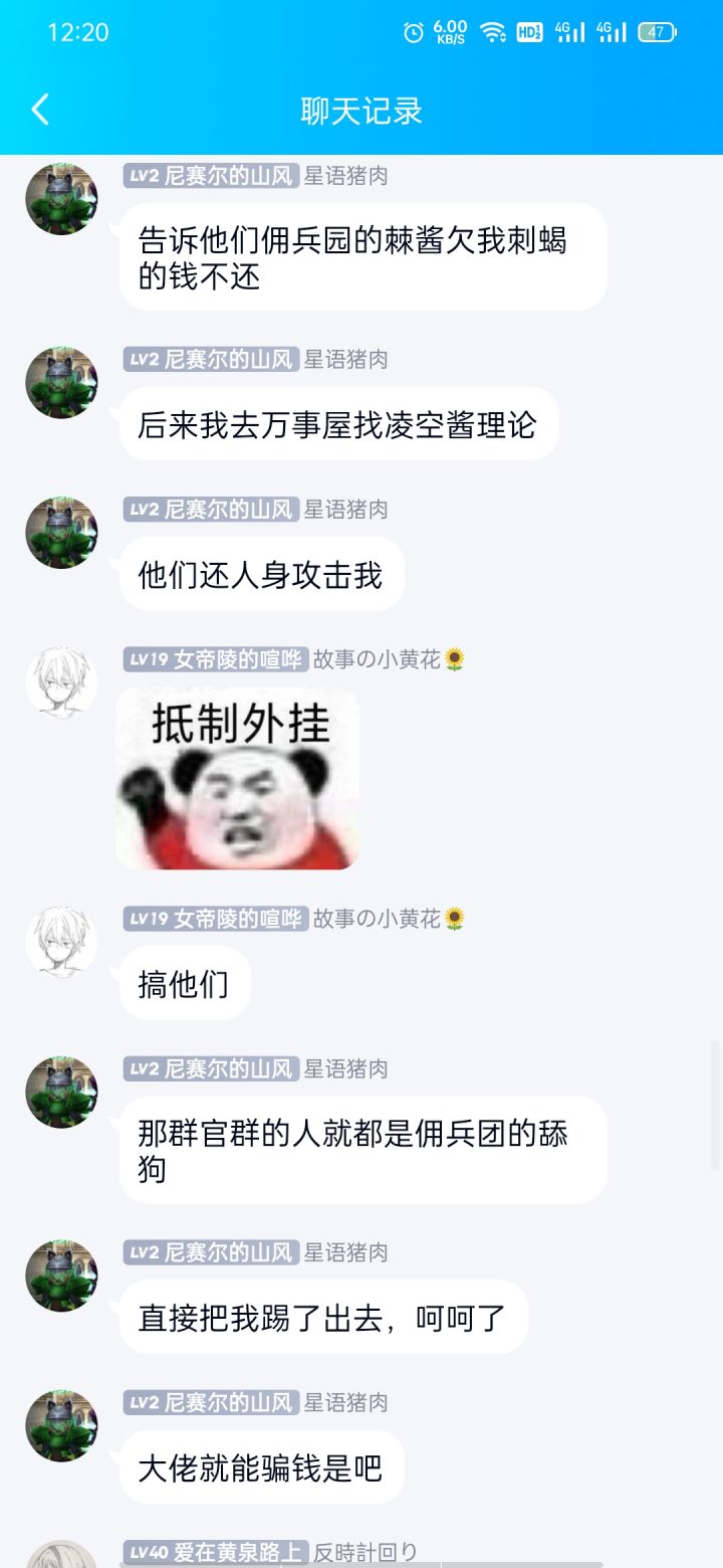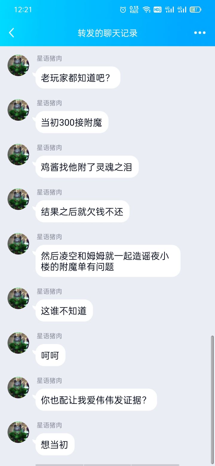 在我眼皮子底下骗前置也是很绝一个大佬在世界上喊有没有谁认识我就发现事情不对劲了,他一身萌新装,就是初始装我很奇怪要给初始装搞草龙吗,我借他之后他跟我说碎了,说加我,现在没钱,以后还我,我就觉得算了,毕竟是萌新,就说好。接着他又开始喊借草龙?我很奇怪,就私聊他为什么还要借不是已经装上去了吗,从这时候我就开始有丶疑惑但是没有太在意,他慌忙跟我说他打错字了(明显复制粘贴啊)至于我和他的聊天记录已经没