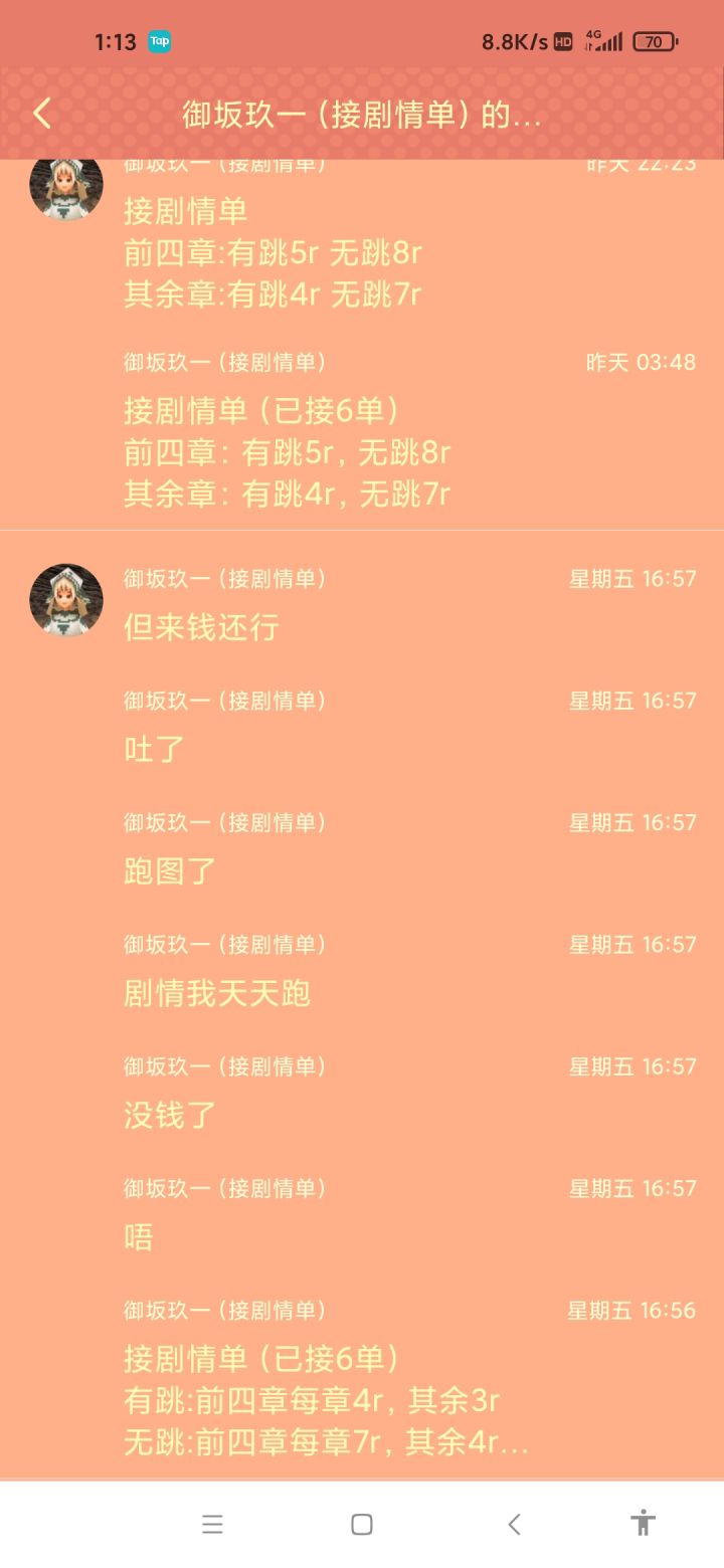 去年疫情无聊的时候我也跑过不少剧情单(赚了少说也有小三百了)有跳周卡 无跳月卡 不单跑前三章,这是当时的普遍价格(按照当时的币价,跑剧情单其实还不如搬砖挣得多)虽然我半年多没跑剧情单了但是剧情它并没有任何更改(只算前八章的话)您有跳4x(4+5)=36无跳4x(7+8)=60好家伙,直接翻倍了君子爱财,取之有道这种事,我不能忍
