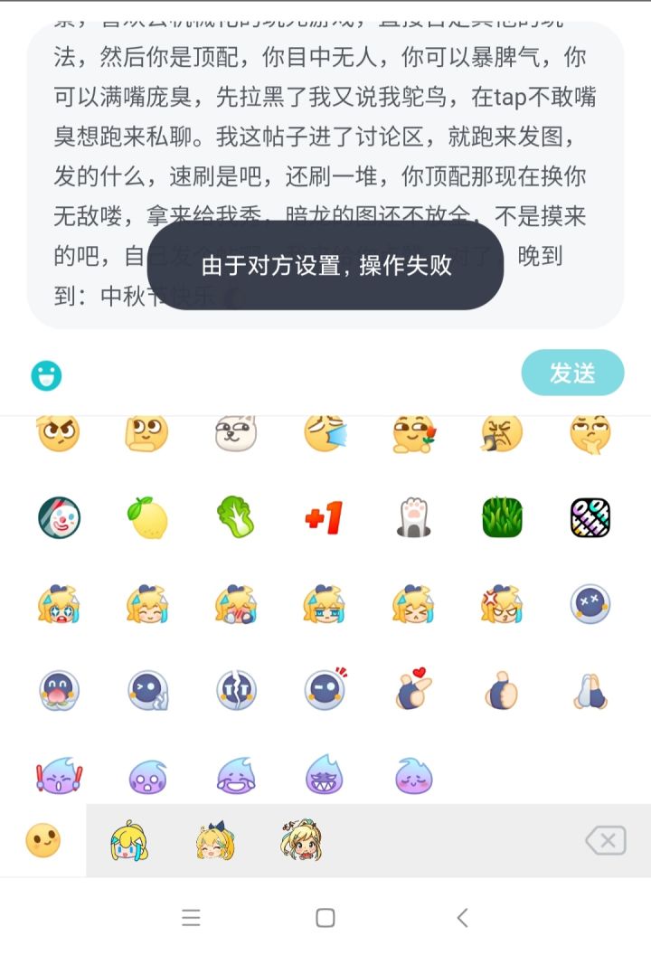 这次直接发讨论区好了。抱歉玩的有点晚,来迟了,终究还是第二次拉黑,被他口中的精神胜利法给精神胜利了老哥中秋节快乐哈我也不拉黑你,没看到就偷着乐吧。