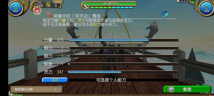 岁月沉淀,苍生不过是一瞬间。在洪荒的潮流里,剑,劈开了一个时代。如果账号里有任意一个角色到达了150级,那么建立的新角色可以直接学习各个技能树里的四阶技能,玩法更加多样,可以进下面的帖子https://www.taptap.com/topic/3633162初级教学(从零开始的萌新)能力加点仍然是主力副灵(先点满力量,再点灵巧,注意不能够五边形加点哦,这个游戏不太一样!)能力加点的效益会