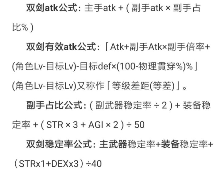 本篇来自于一名兴趣使然的双剑玩家自诉。不是大佬,也没有值得自豪的单刷记录。能提供的只有自己一路玩下来的经验。本篇攻略不提供数值分析,只提供数据交流;本篇攻略不提供过渡装备,也不追求极限对属;本篇攻略非个人原创,只是将自己心得和其他大佬的经验整理写出。可能写的会很乱,后续完成全篇我会将其排版。一、双剑稳定率的意义随便丢张图许多大佬强调的主副手稳定率,我解释下,主手稳定率影响伤害变化幅度不影响