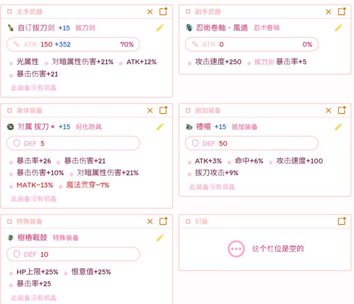 注意,此帖仅为分享玩法,当前版本无9周年拔刀情况下,需要补足大量咏唱面板,伤害极缺,不建议现在游玩格斗小刀vs树人格斗小刀vs阿鲁面板要求卷轴选用3/0.7以满足日常使用,咏唱必须达到5770若仅攻略高难不考虑常态输出,可选用高咏唱卷轴作为高难专用机体(正常拔刀也可以这样玩)连击分享接下来是高难专用连击,适合本人这样的手残党使用配置为格斗小刀(魔团炎龙),对属衣(阿鲁熊),白色针织