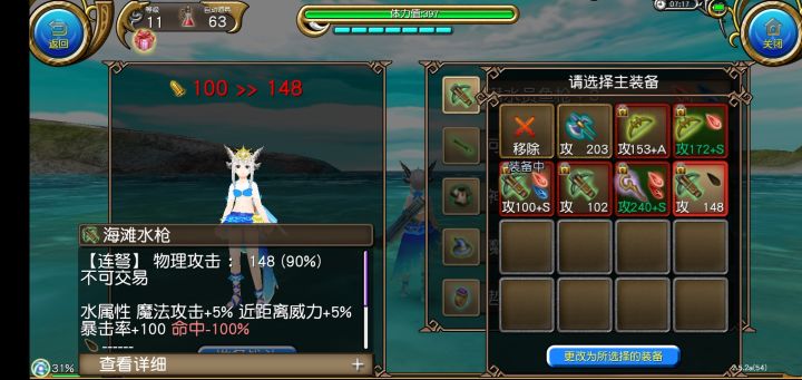 注:本攻略仅供娱乐在副手带箭且主手不是杖的情况下,爆能可以吃到箭的属性,于是就有了这样一个想法。加点:主灵副智装备方面:武器:海滩水枪,本次夏活积分兑换,百爆确保了暴击,同时还有魔攻加成,90稳,-100%命中没啥影响。其实我本来是准备用我仓库里吃灰很久的精s双孔潜水弩的,结果王石都上好了才知道这次夏活有新弩emm衣服:衣服用王掉约克,750咏唱9攻回,开单孔带死菇追加:铁匠铺的魔术