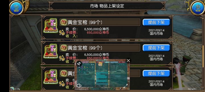 我在板子上买黄金宝棺开罗赛塔石板,结果买多了就想着在板子上卖出去,买的时候900多一组,1000多的也有,买了近二十组,然后我想着把这多余的卖了,一开始900一组,过了一晚上我发现没卖出去,我看了看其他的黄金宝棺,有一个895的,然后我就降到888到了下午ta就到了850左右大概多少我也忘了,我接着就降到700,好家伙他直接降到555,我直接气炸