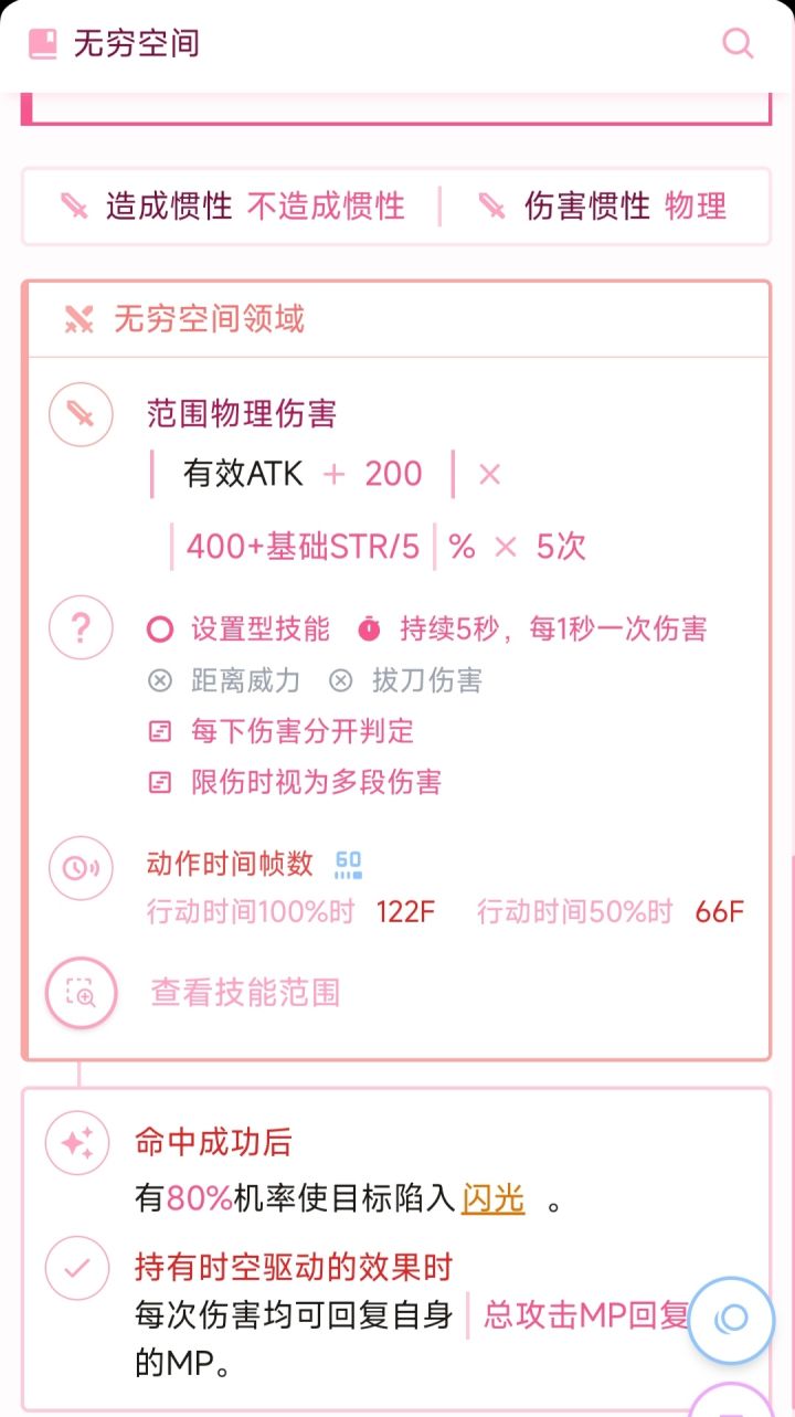 1.技能倍率:2000+基础力量*1,(不吃远近威力,共10段伤害5次判定,动作66帧)这玩意是有伤害的,现版本500基础力量,按我的配装是30%近威,所以它的最终倍率为1923左右,手感上来说最适合裸放(吃无之架势)。(你把它当成一个很容易中的星坠就行了)2.闪光机制:10段伤害每一段80%上闪光,可以说是必上的。闪光:将擦伤判定在原有和2倍保底命中中,取较高。枪是20%保底命中,即上闪