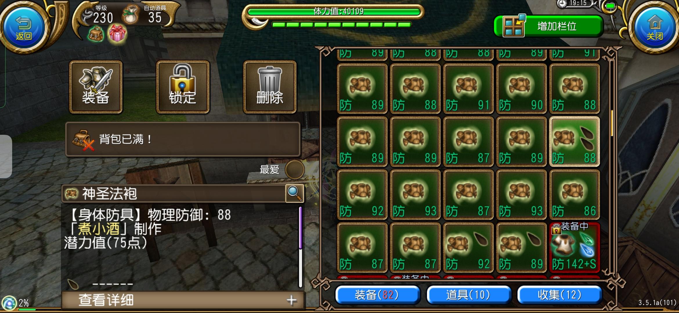 两件一模一样的诶!(都是88防御75潜力)如果我凑不齐6件一模一样的,这两件以后附好魔找个老婆送了好了(乐)
