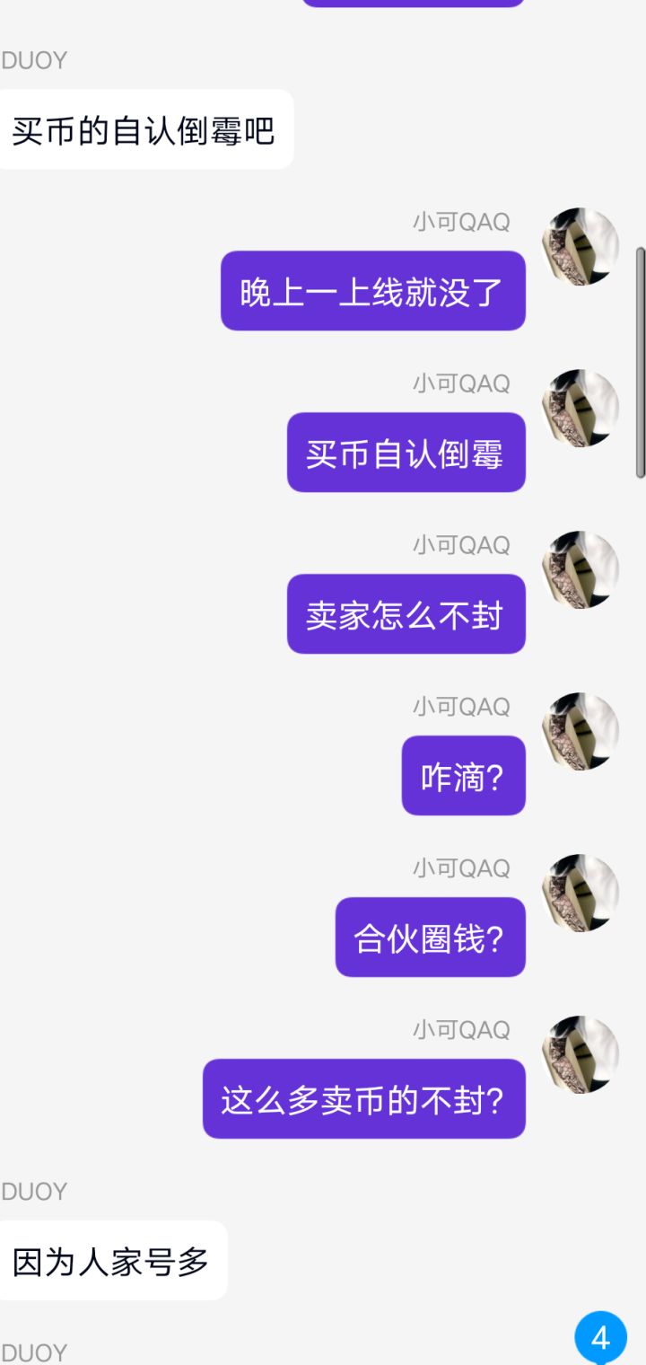 萌新刚刚玩买点币装备被封了~萌新买家基本都被封了卖家啥事没有,继续麦?官群给的答案。把游戏商号封了怎么麦?不懂诶???号都没了还有币啊!别的号装备卖了继续麦?交易数据一起封不会?不至于吧这么菜的技术人员!!!这不是一起合作圈钱?比某些换皮游戏还让人恶心我还是20多天之前买的,怪不得会在tap下架就这?丢人现眼的玩意开什么国服滚回台服国际服好吧。来恶心人?下架就发链接了好吧诈骗🐶一群。