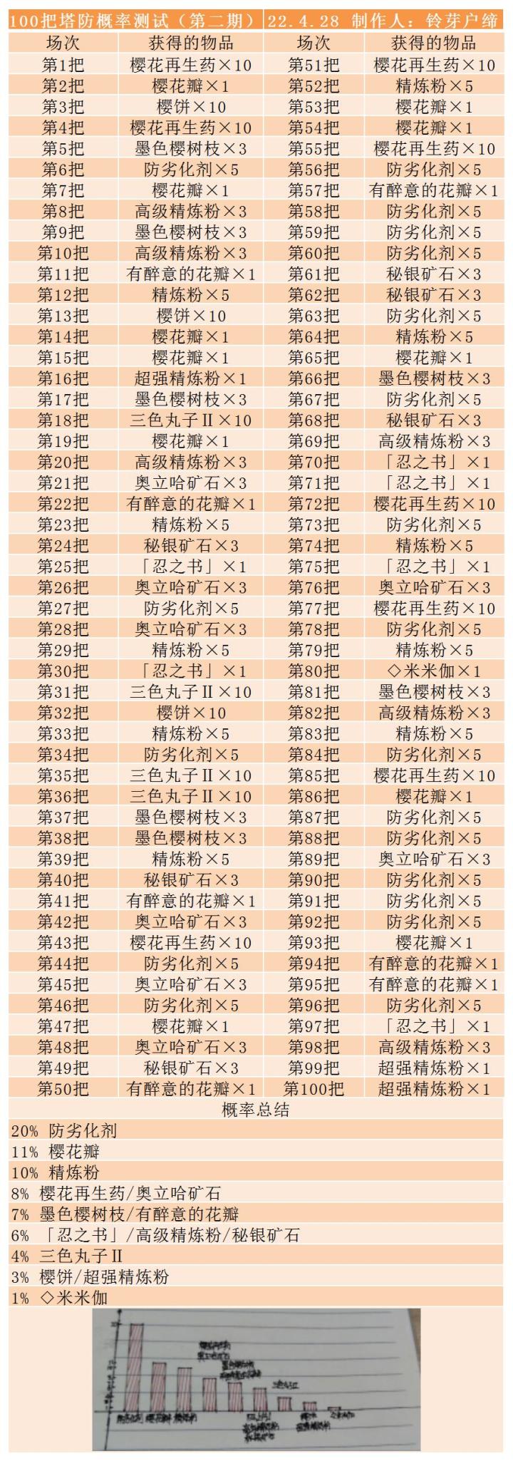 100把塔防概率测试(第一期)Ps:个人数据仅供参考,可能会跟实际数据有些误差,还请见谅,有兴趣的大佬可以自己去试验一下概率,建议多试几个号,概率应该都差不多
