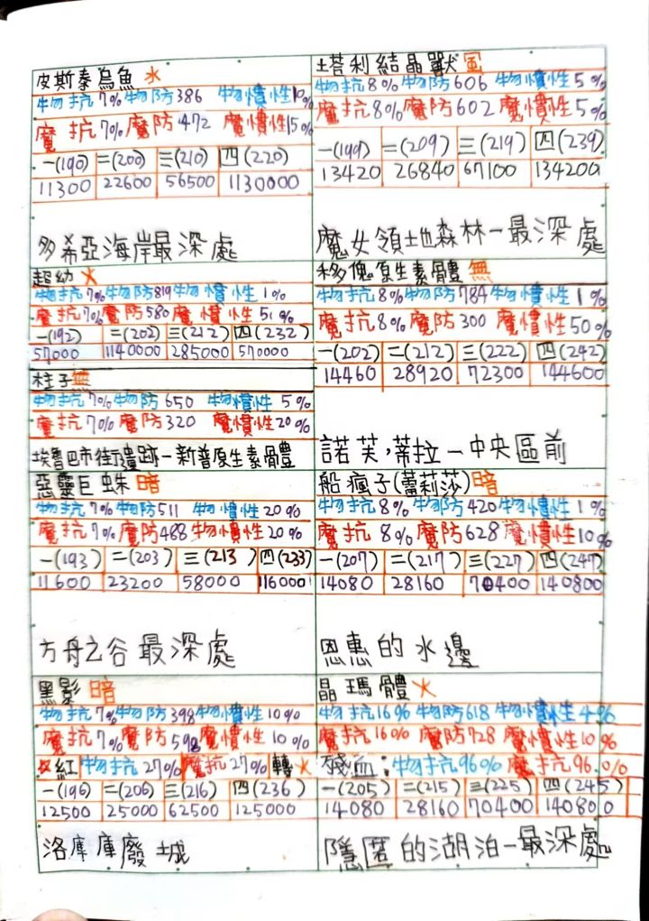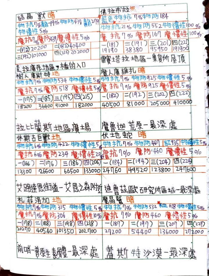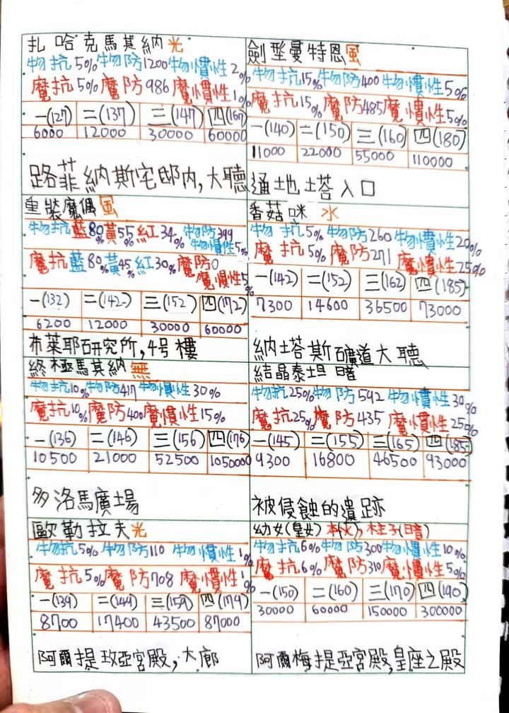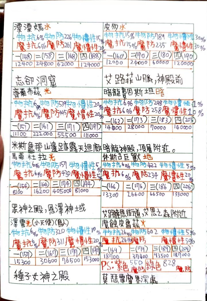 [代发]托拉姆防御表,经验表