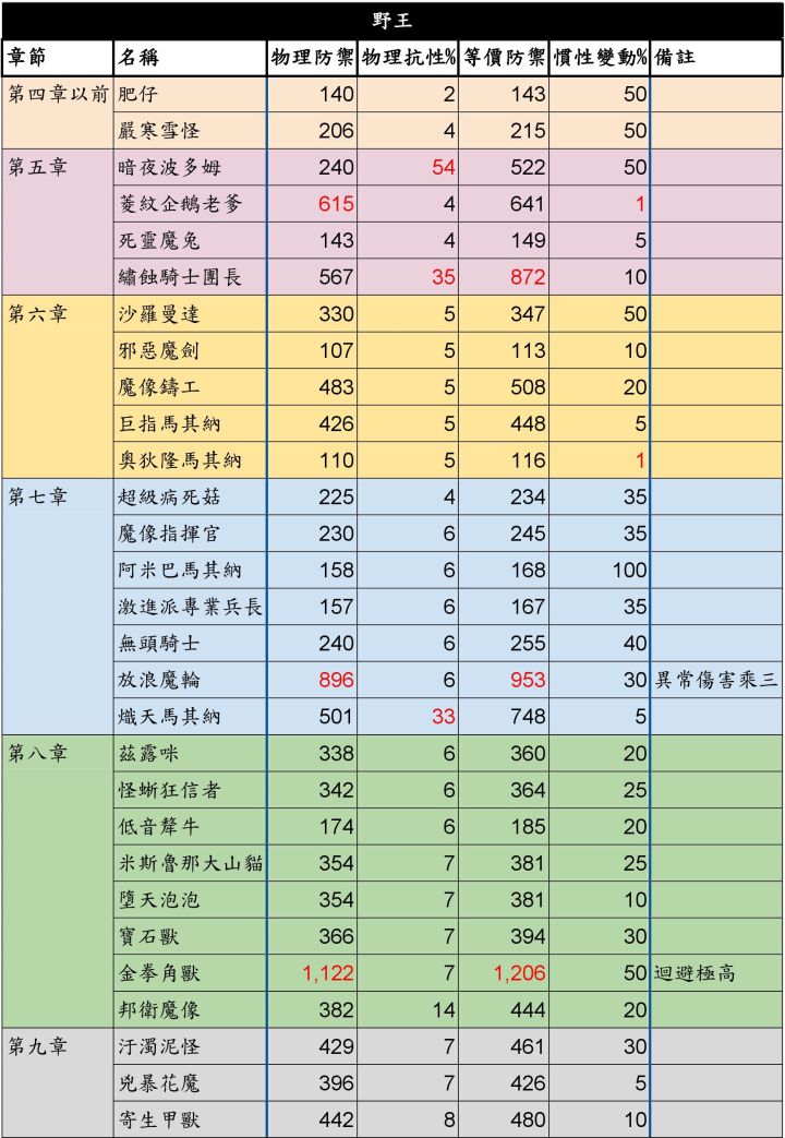 重要公告:下方EXCEL连结为2021年最后更新时的总和关于更新更全面的BOSS资料,请看77楼——————————————————————————————————————继以前发过的伤害公式贴 这次使用正确的公式进行重测,得到了精确的防御与抗性了,也把它贴到tap分享一下。惯例的注意事项:1. 虽然标题打「全BOSS」,但其实只有第五章后是全的,第四章以前的只抓了特定几只来测。2.