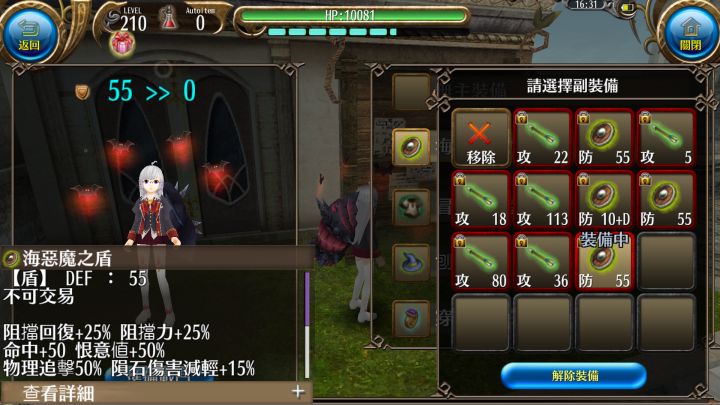 ✩ 身体防具装备初始潜力值|53基础锻造熟练度|0✩ 最终结果暴击伤害+10%|暴击伤害+21|暴击率+24|ATK+8%|命中-14|命中-5%|MATK-12%|魔法贯穿-6%✩ 素材耗量金属 0|兽品 10200|木材 41600|布料 0|药品 38000|魔素 98376步骤数|461. 附暴击伤害+5%|3pt2. 附暴击伤害+1|命中-8|57pt3. 分次附、每