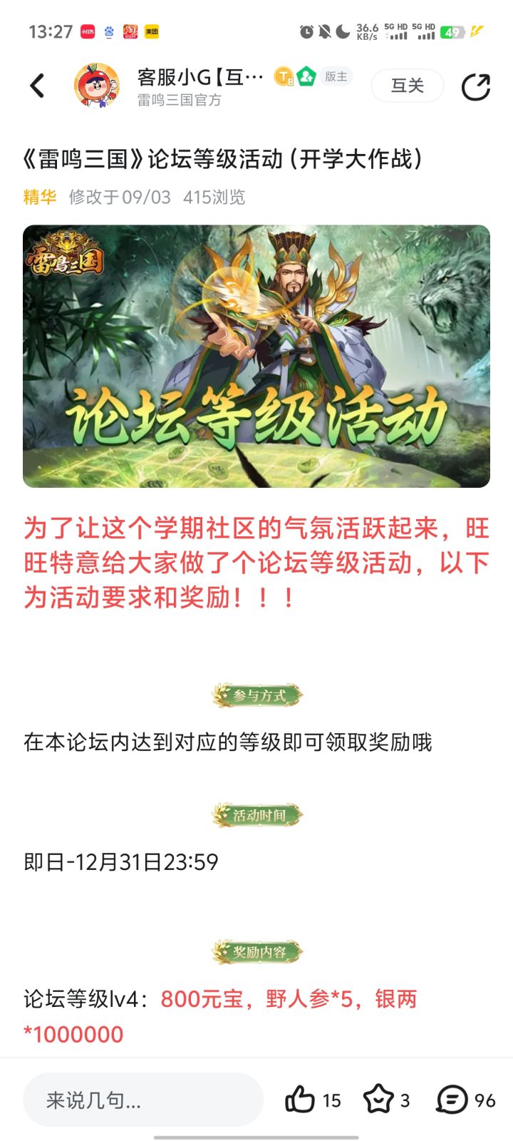 到了开学季也是活动多多,很给力#雷鸣三国
