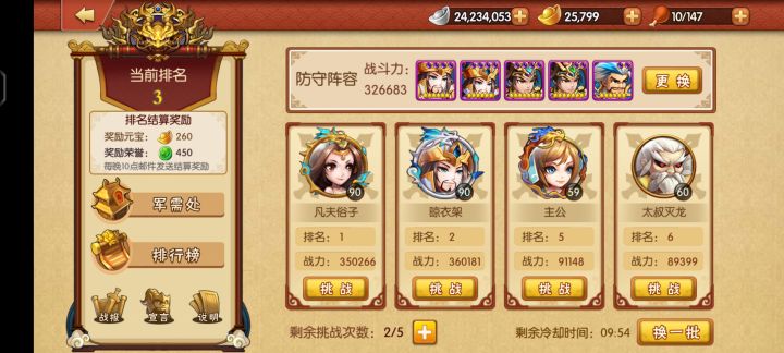 演武场排名,每天最多300大洋,600荣誉,奖励根本用不完#雷鸣三国