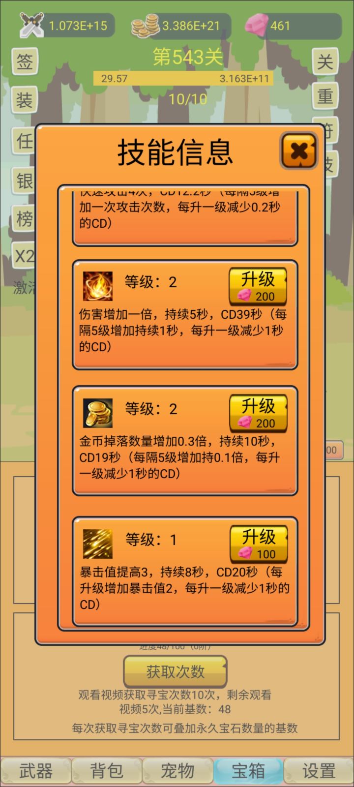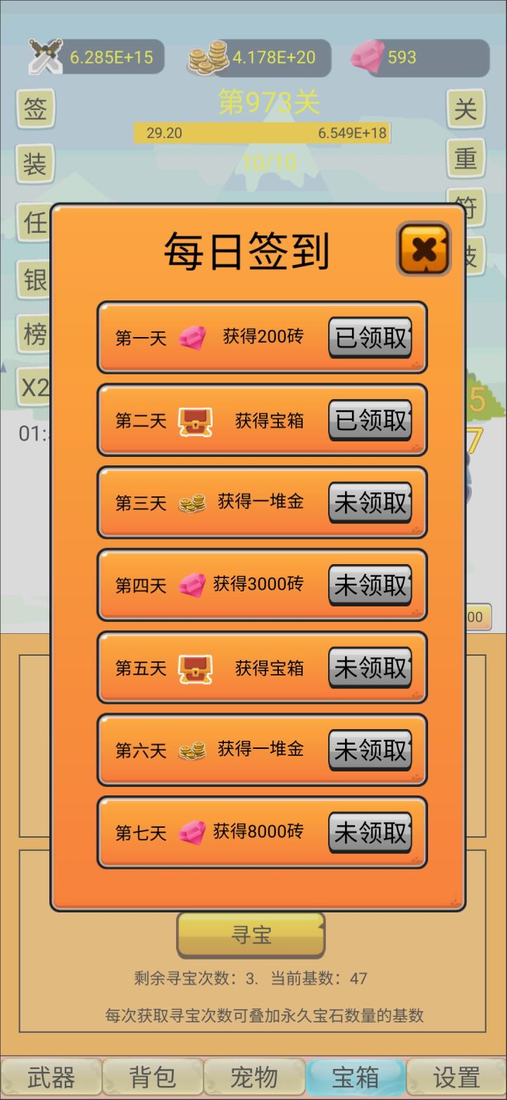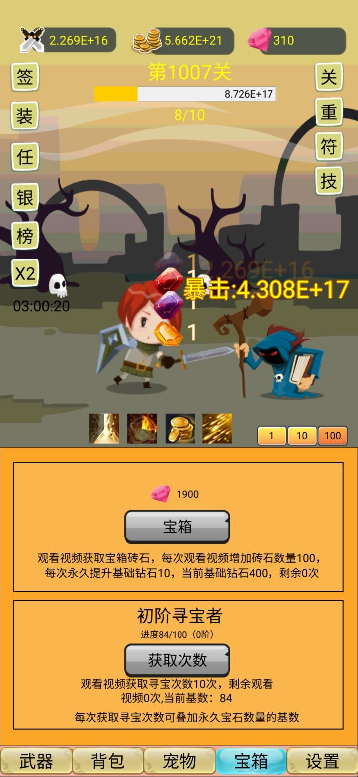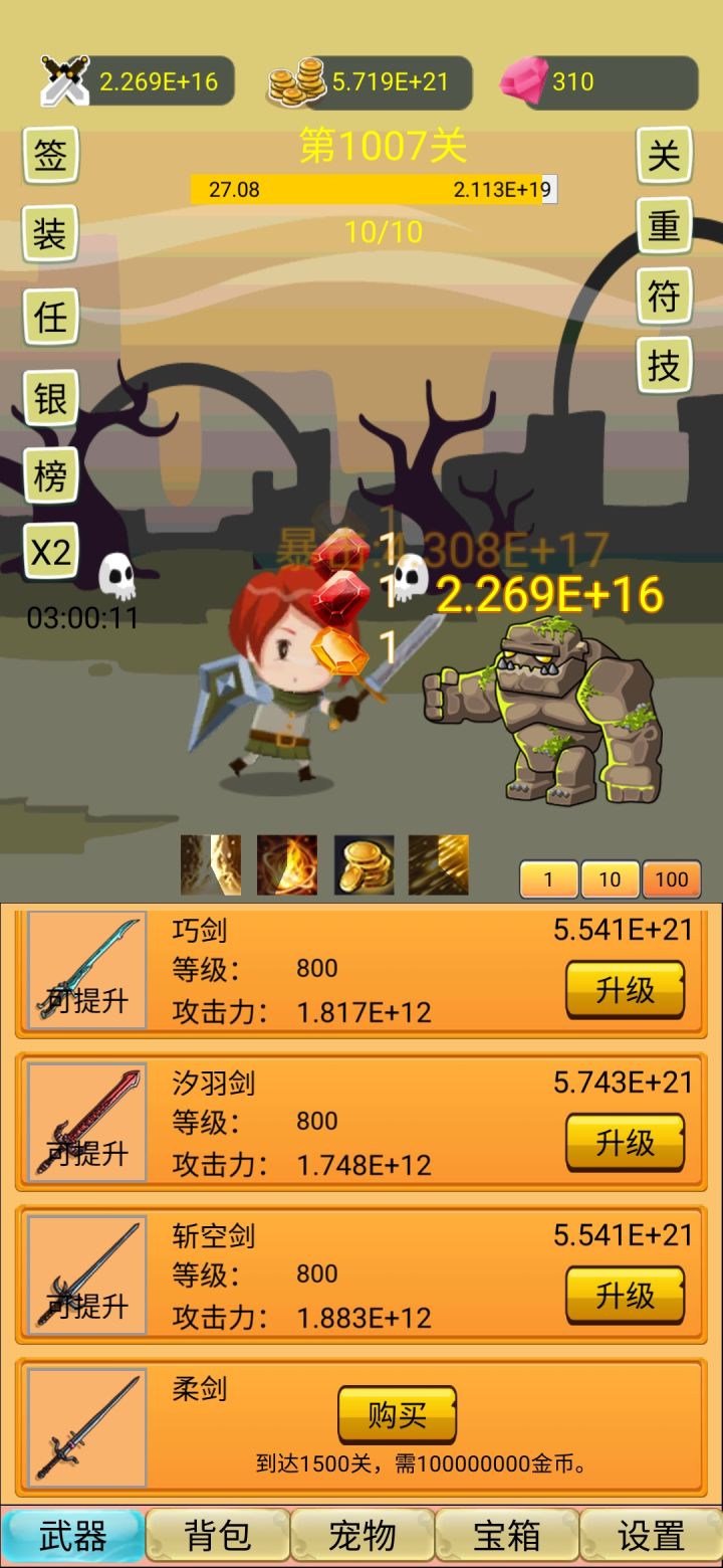 玩了两天,每天除了重生一次和重置关卡两次之外,似乎就没什么提升了,买了新武器也没什么提升,我觉得可以参考一下十万个大魔王,转生给材料,转生关卡越高给的材料越多,材料用来点天赋,天赋可以提高伤害,掉率之类的,不限制转生次数,不过转生之后就提高下一次转生的等级限制(例如第一次转生要求300关,第二次400关,第三次500关这样),这样玩的还比较有动力一点