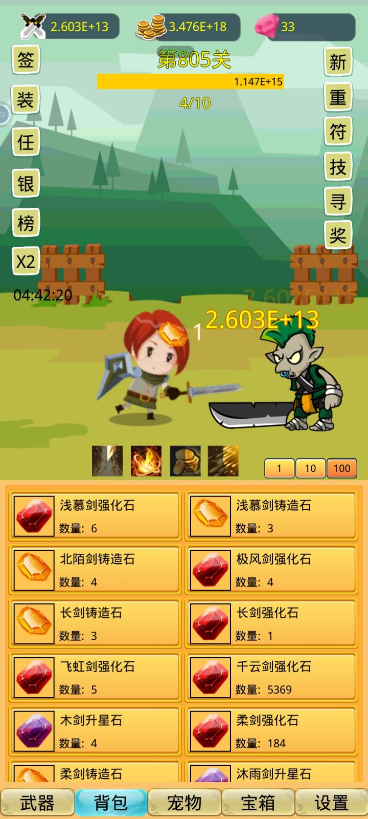 最新bug:武器升星级、强度、威力的时候,不管你多少石头,按MAX就全用完。这次更新才出的。
