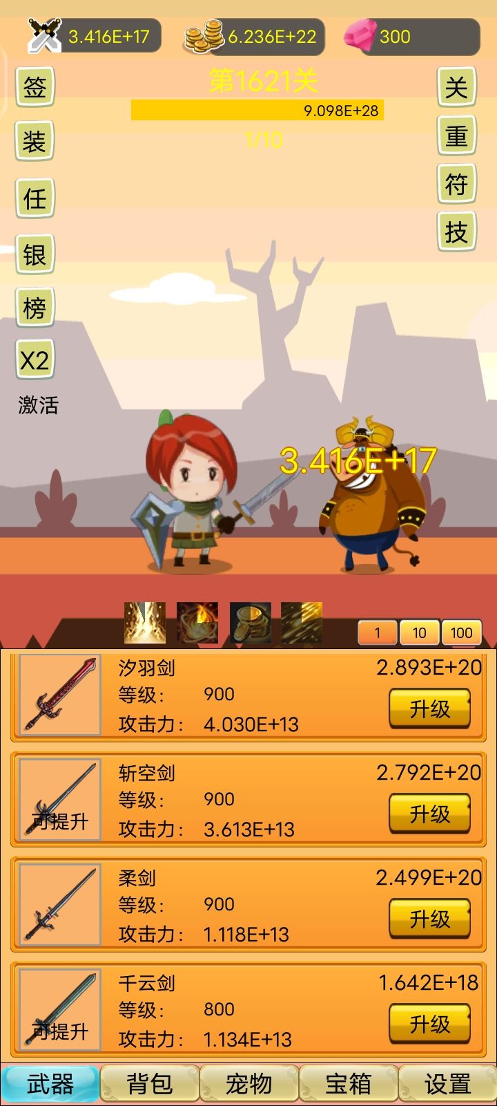 如图,点疯了已经能搞个长按快速升级吗?或者弄个x10x100这种按钮