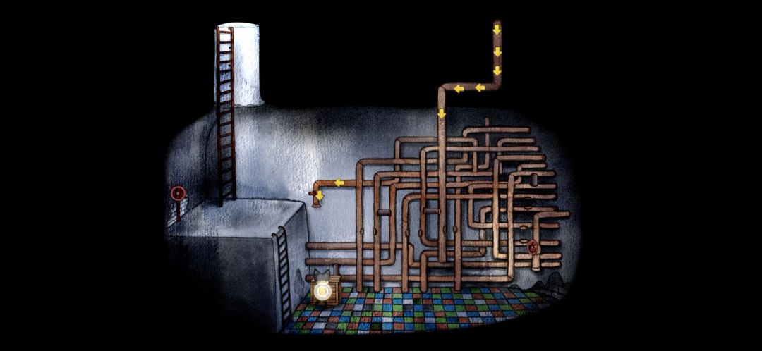 很好,过了这个管子出来给我卡在右边不动了,我遇到的bug😑测试,退出重进不会卡住,但是不能点如图右边下面那个楼梯一点就卡在那鬼畜,怎么操作主角都不动