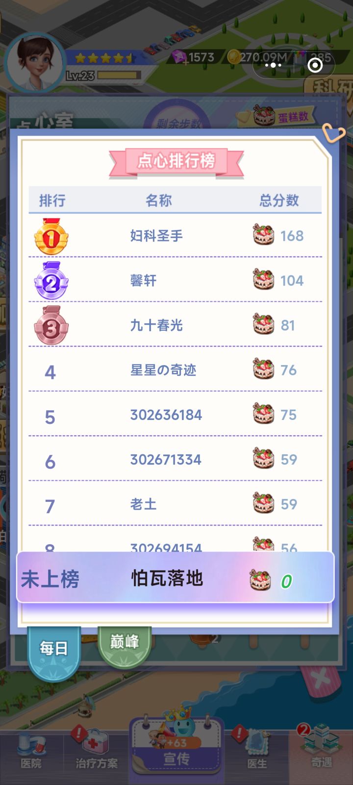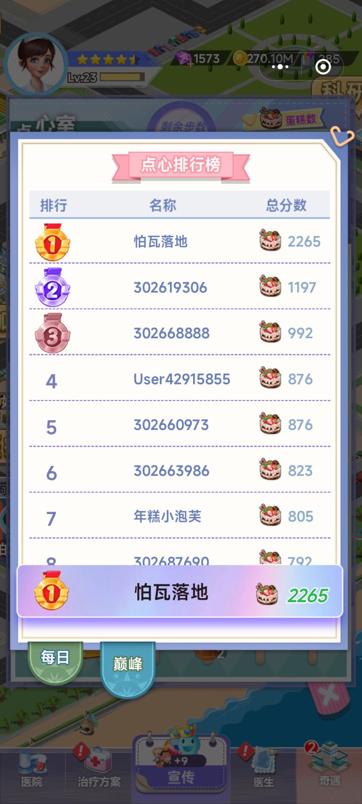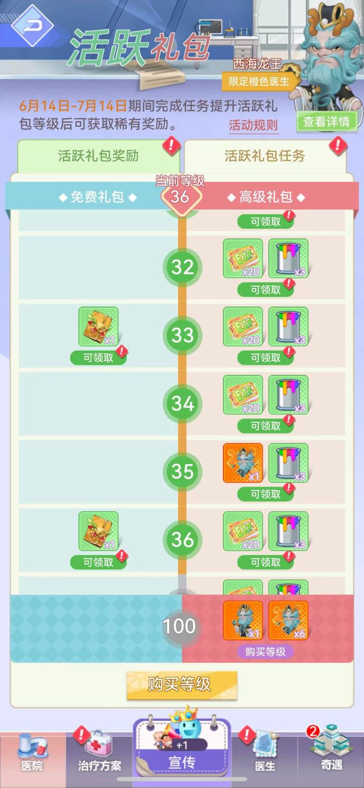 #院长有话说游戏编号:3026568071.治疗方案,急诊方案如果全部满级了,那么挑战活动,活跃礼包等相关任务应该算直接完成。2.就医指南评选的达标条件具体需要多少数值要有提示。3.开放世界频道,方便玩家互动,能增加人气和活跃度,提高留存率。4.咖啡厅和宜居家居增加每周每月排行,设置相应奖励。5.医院装修的室外环境和急诊关卡以及科研属性更新太慢了。