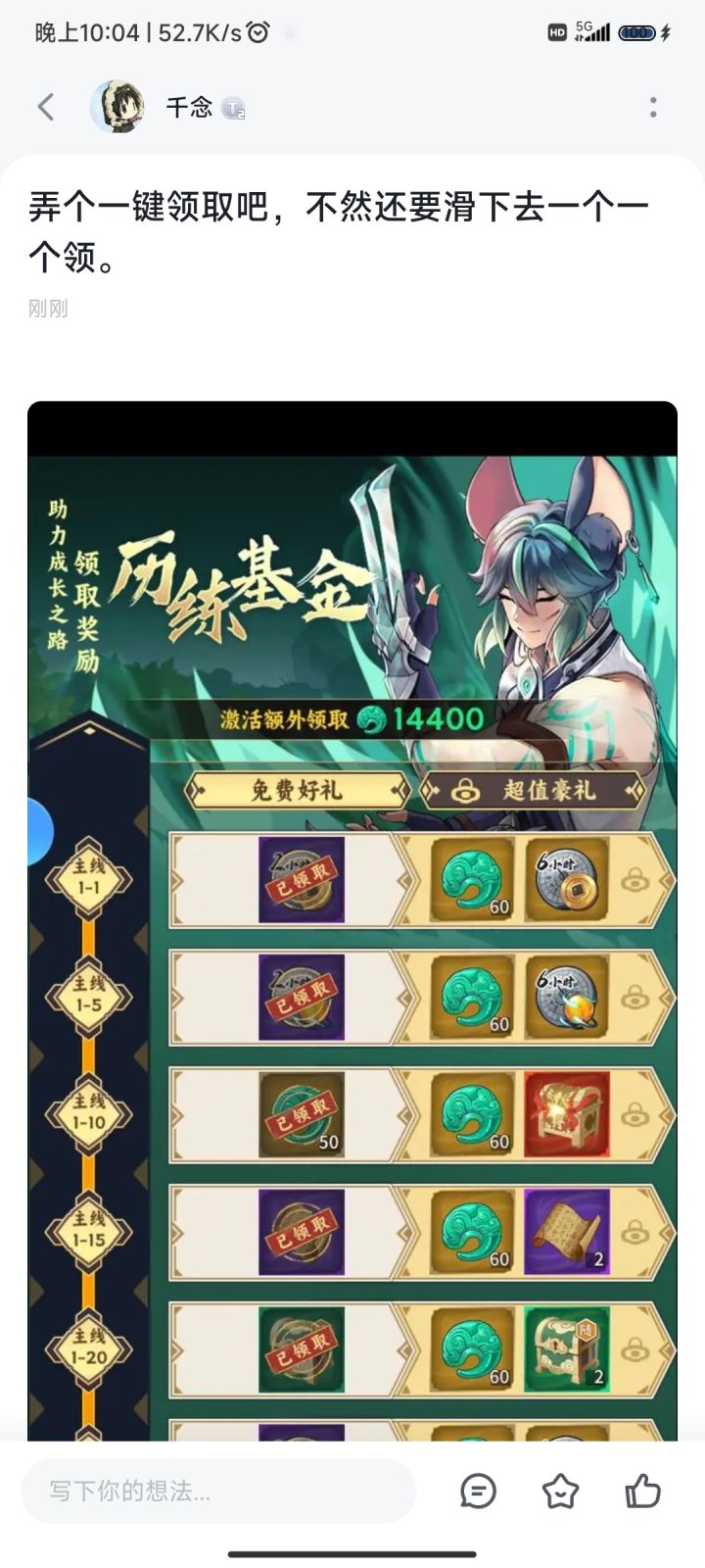 要是可以一键领取,或者点进来就到红点处就好了,懒惰型强迫症好累