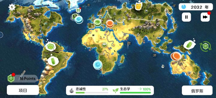 每次打出现黄色那个东西后就卡住了,看广告的自动收主动点就不收了,手动点也不给主动点,挂了半小时全世界生态问题都打勾了,结果不显示保持生态稳定的进度条