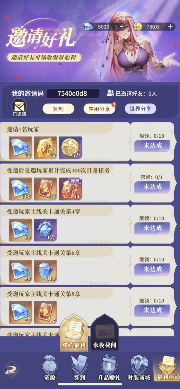 输入邀请码7540e0d8,领全部福利,以下是所有激活礼包码db463aa6dcab099e(新) VIP6666 VIP7777 VIP8888 yyjl666 yyjl2025 ZTA666 小爱666 小爱777 小爱888 永夜降临 永夜降临公测永夜降临满月庆典满月感谢礼永夜之声小蛋糕TCFL888spring1 SPRINGYYJL满月666
