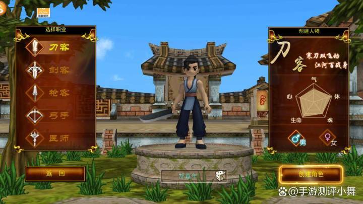 新手篇-职业简介1、登录游戏创建角色阶段可以选择心仪的职业哦~2、目前版本提供了5大经典职业可供选择,分别是【刀客、剑客、枪客、弓手、医师】,每个职业都各具特色!各职业简介如下:刀客:刀客是近战职业,整体成长比较平均,相对其他职业可以更快的解锁群攻技能,提升练级效率,专属反击气功天赋可以在PVP中占有较大优势!剑客:剑客是近战职业,拥有较强的持续输出能力,但是爆发较弱。自身比较脆,面对远程比较乏