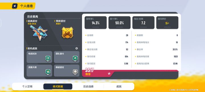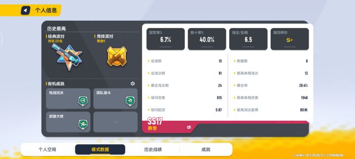 不愧是达达,bug是变着花儿得出。相信大部分人都遇到了。什么4排匹配出现五人,未成年账号无法登陆,服务器波动页面加载不出来,复活再战直接回到原地。还有全员榜一的逆天排行榜。再就是这个赛季机票,那几款人物皮肤真的是晃眼,花里胡哨的,和什么皮肤都搭不上。还有爆破模式,这个模式先不说第三人称,为什么还有声源提示,体验感真的一般。 希望官方能用点心在网络优化上。