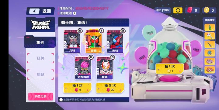 各位老铁,帮我看看集齐五张卡片了,为什么没有抽奖券?