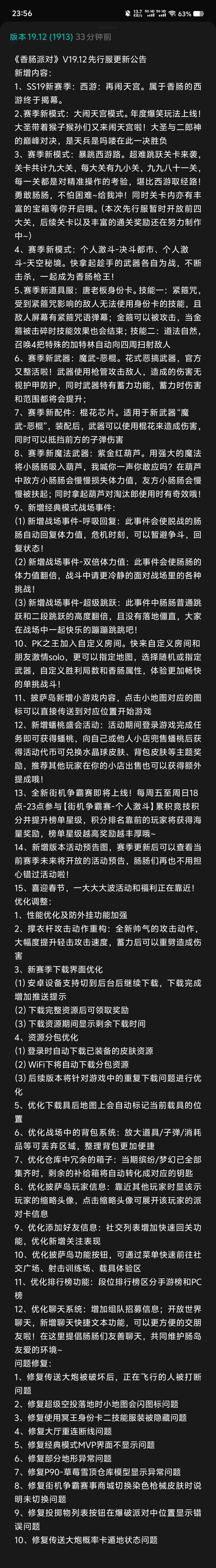 今天今天2024年12月27号星期五今天先行服更新了SS19赛季安装完成我们一起等维护维护完成!